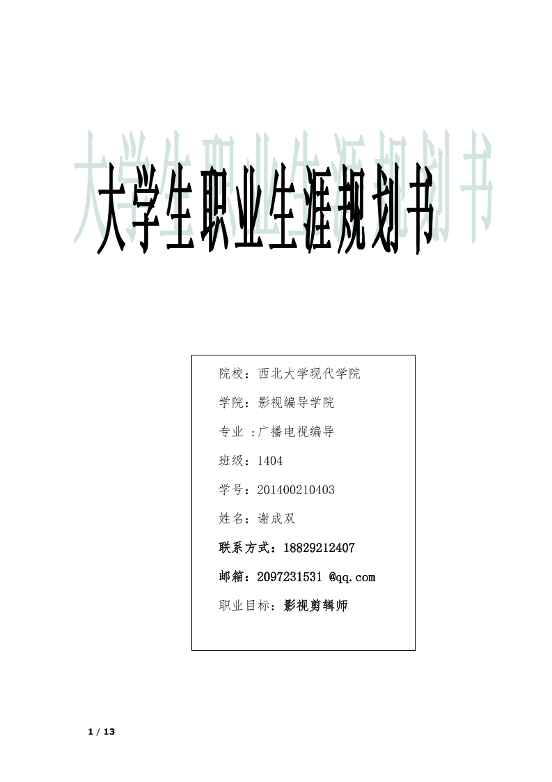 生涯规划书模板