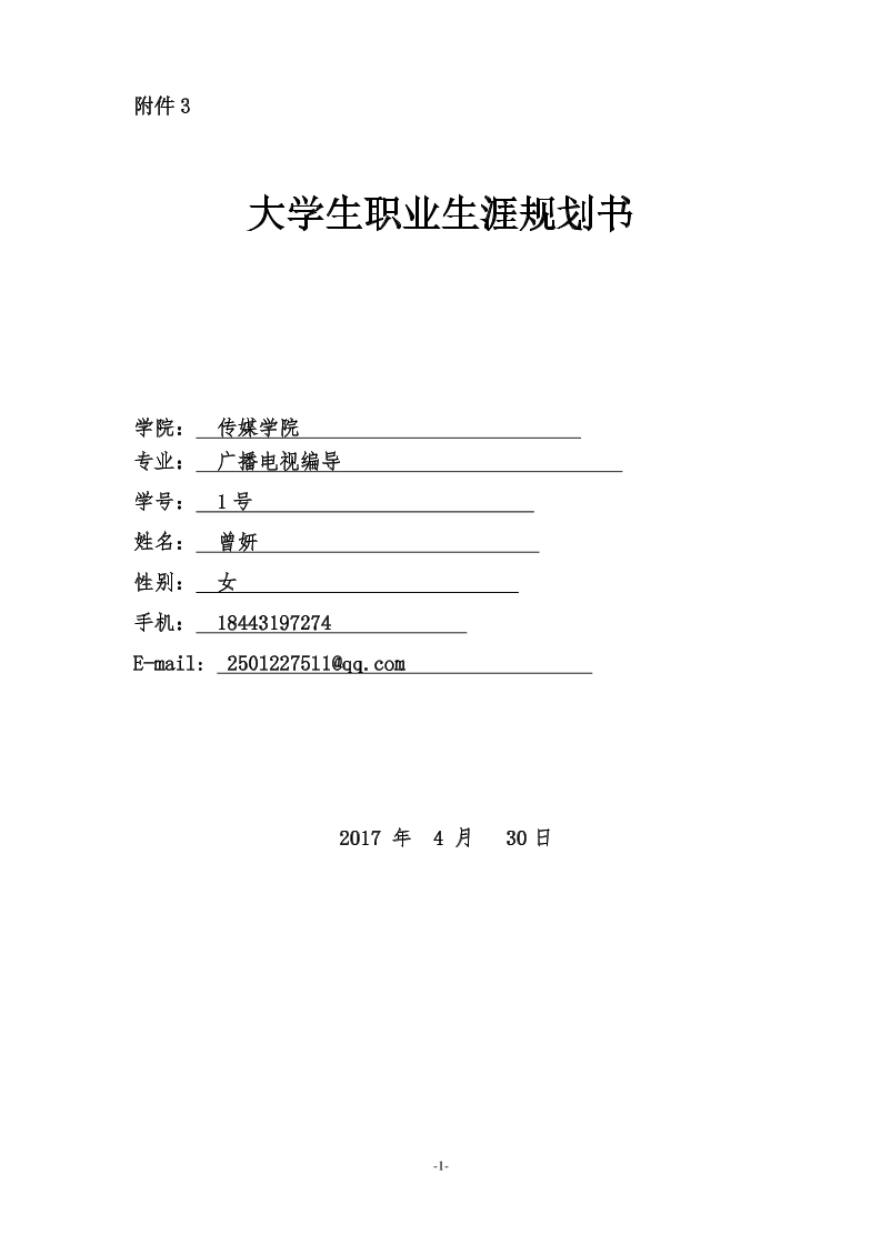 大学生职业生涯规划书(标准格式1)