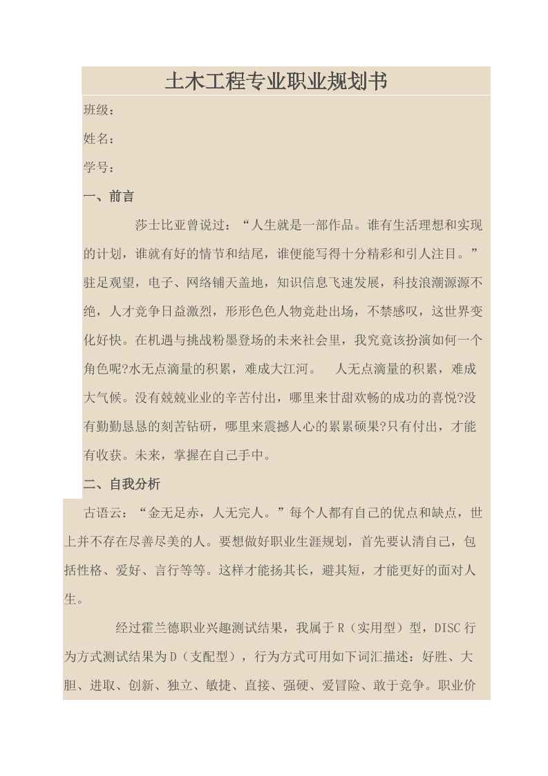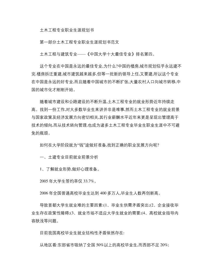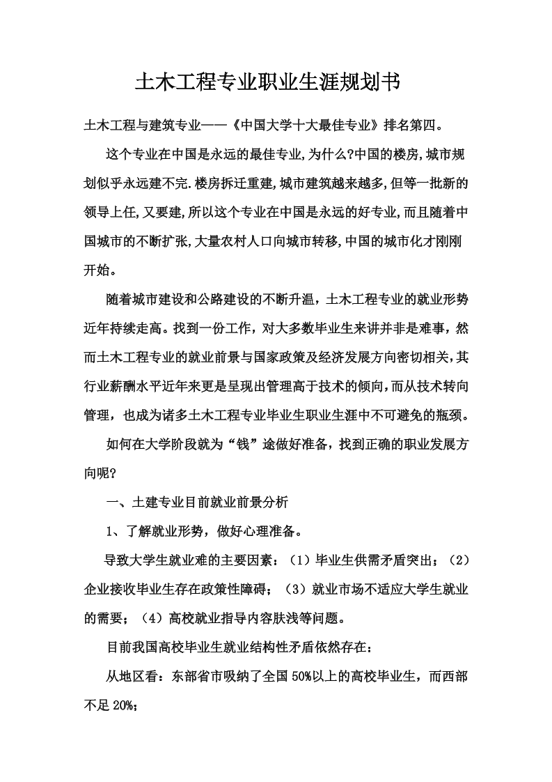 土木工程专业职业生涯规划Word文档