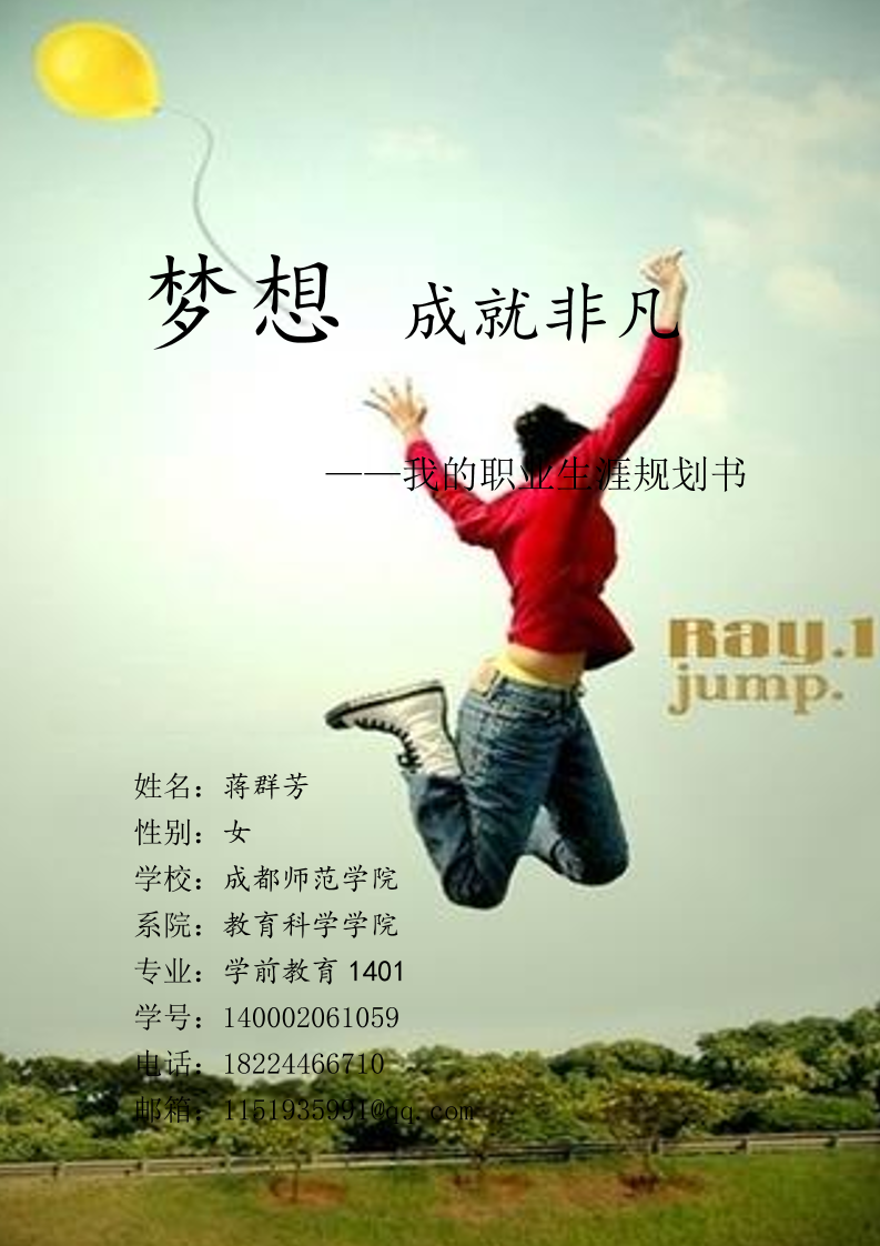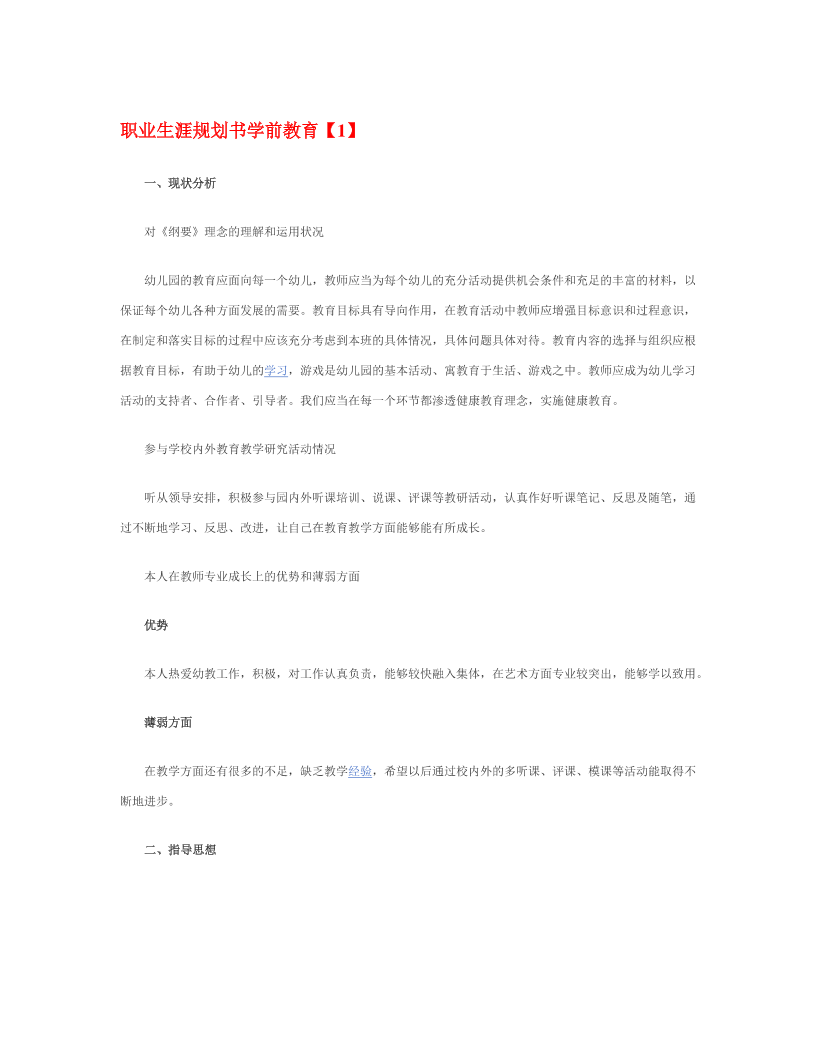职业生涯规划书学前教育