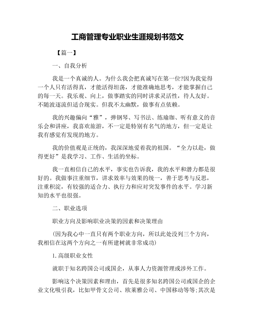 工商企业管理专业职业生涯规划书---大学生职业生涯规划书(最新模板范文)