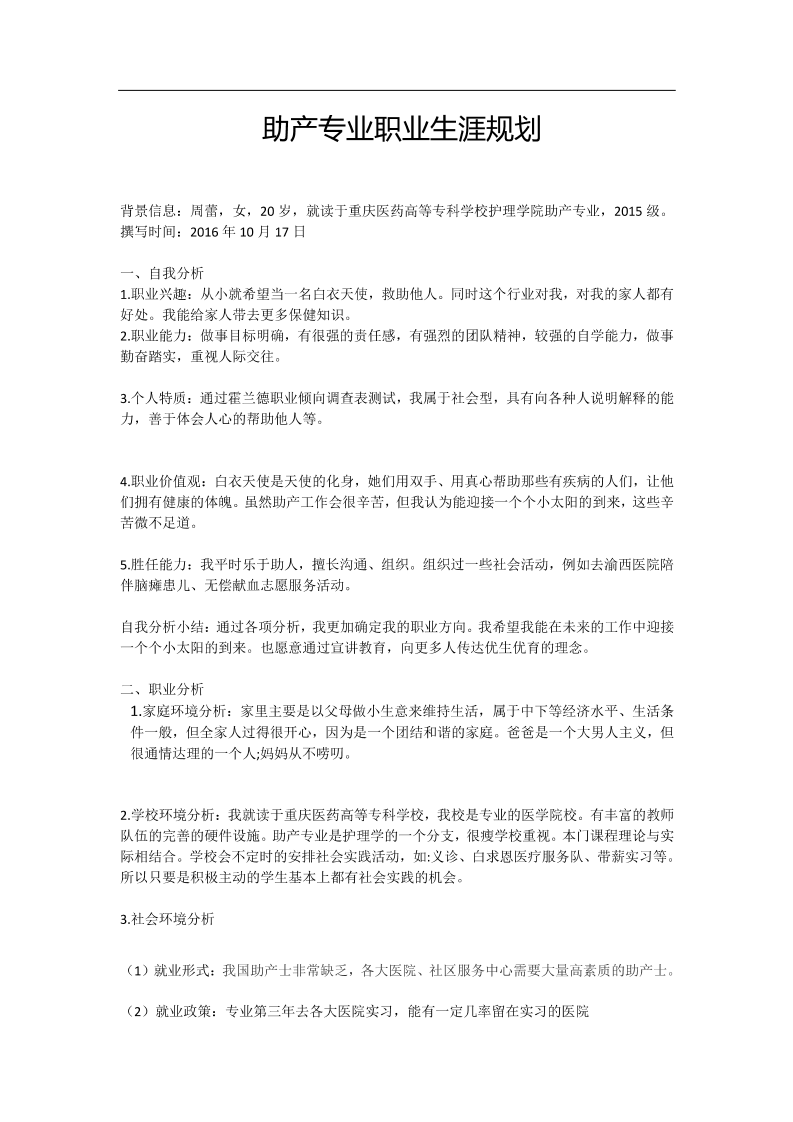 助产专业职业生涯规划