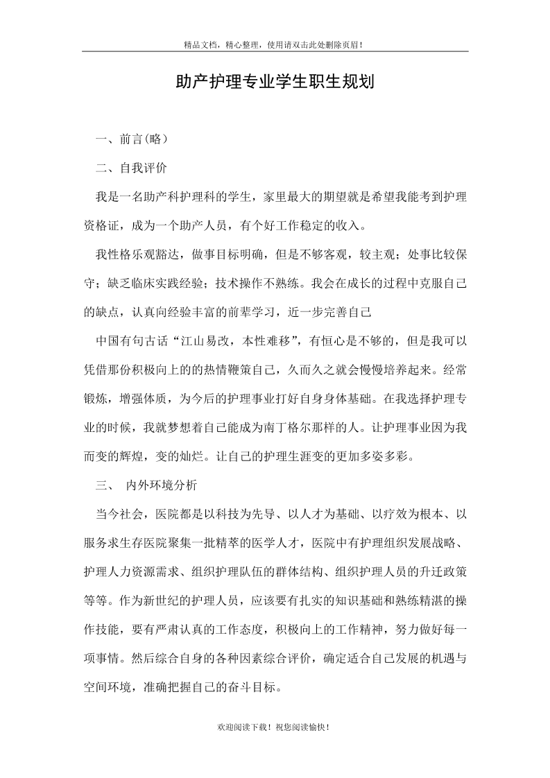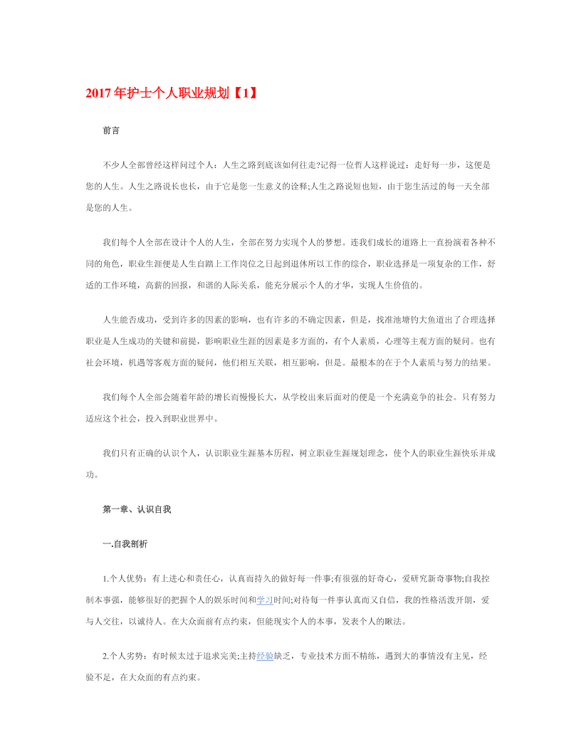 护 理 理 学 职 业 生 涯 规 划 范 文 最 新
