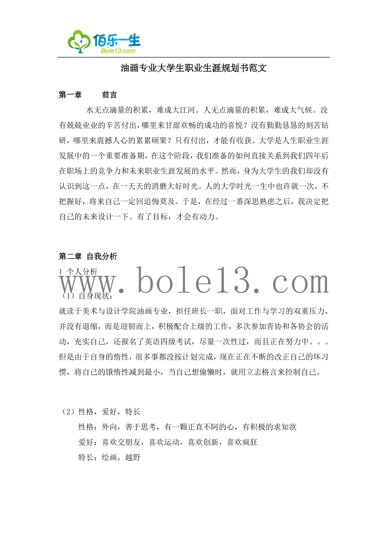 油画专业大学生职业生涯规划书范文