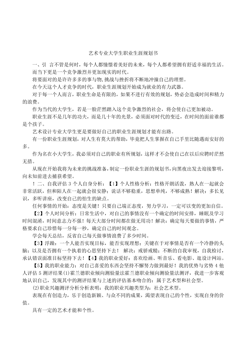 大学生涯规划书(美术生模板)