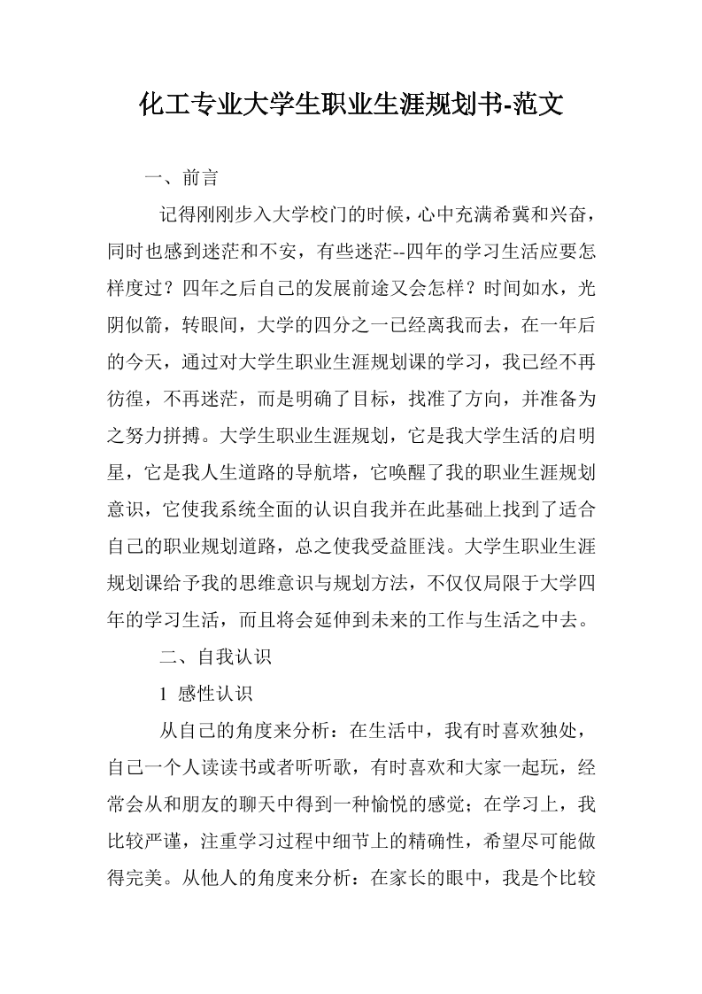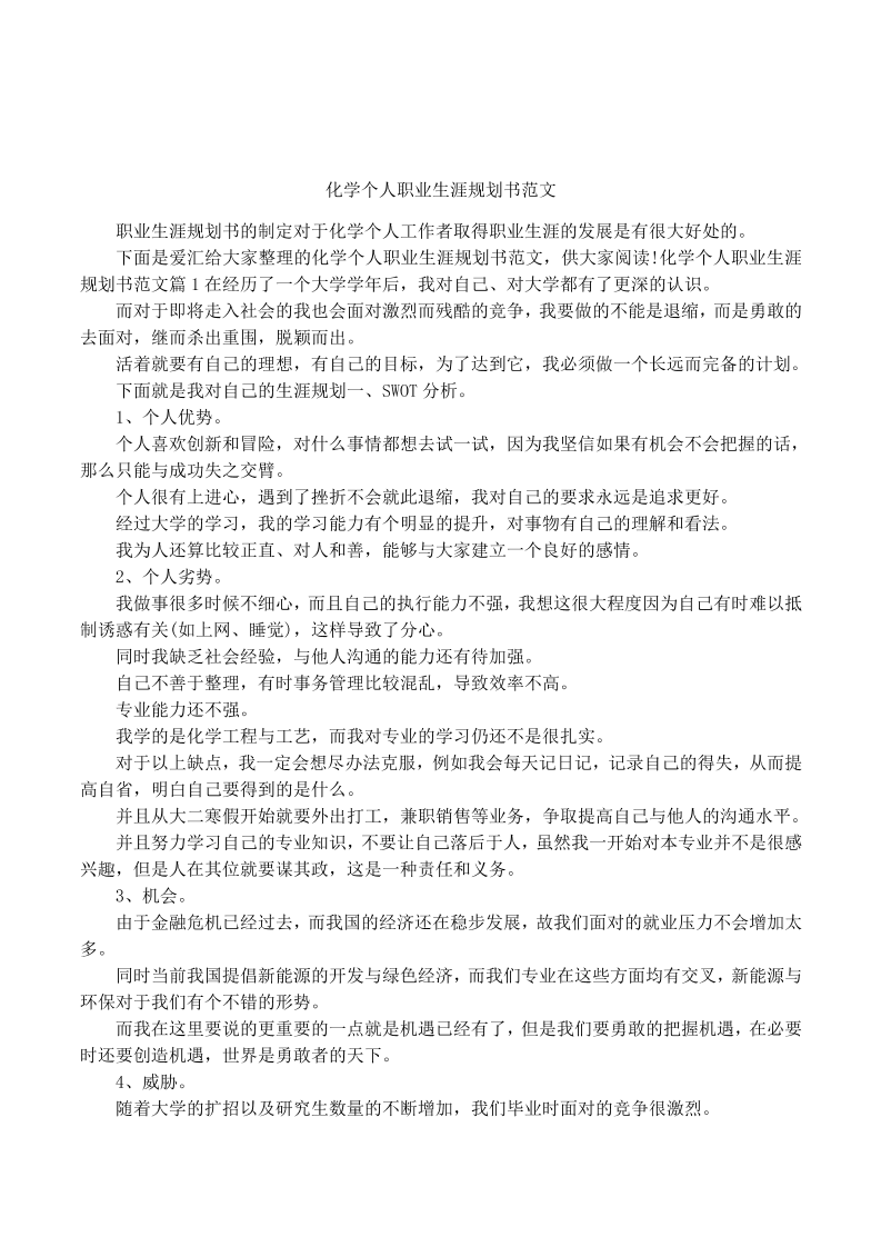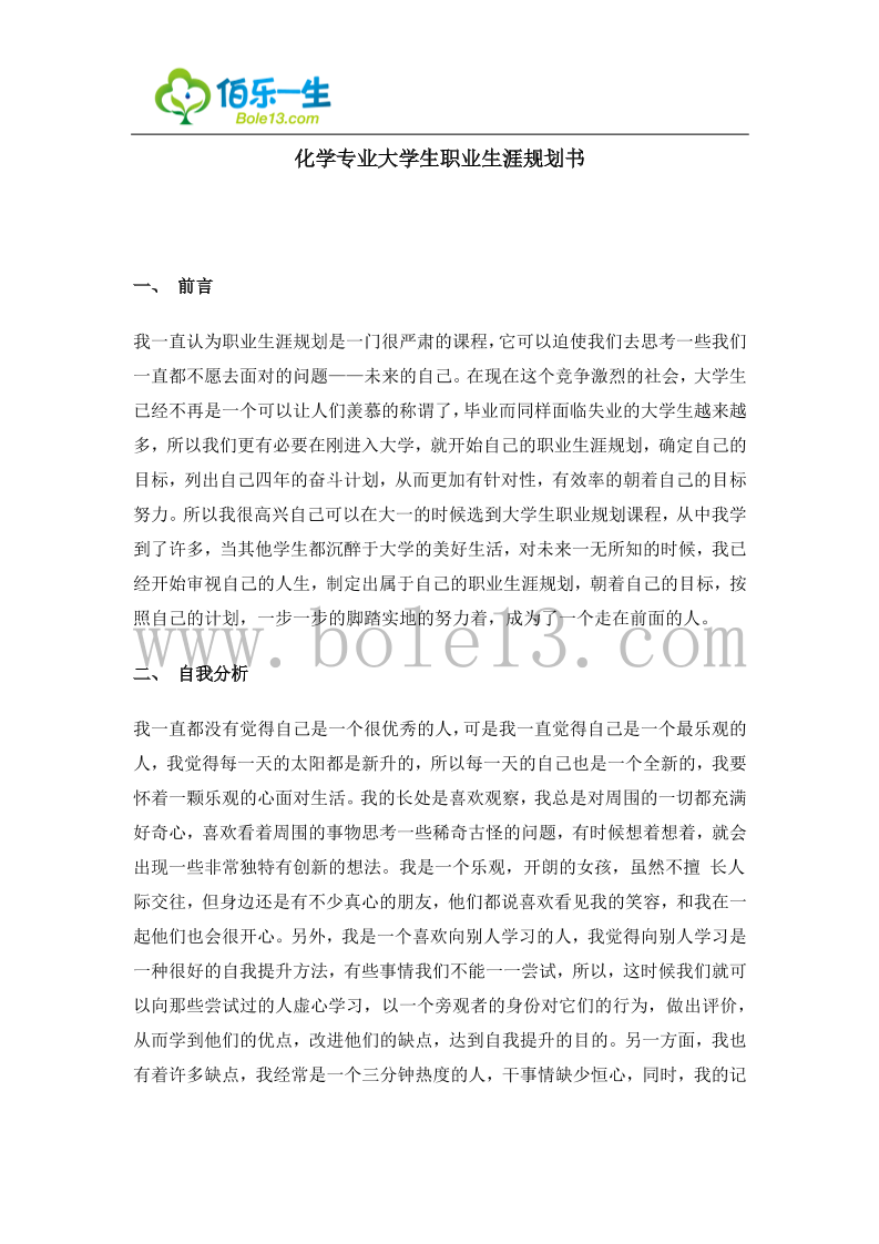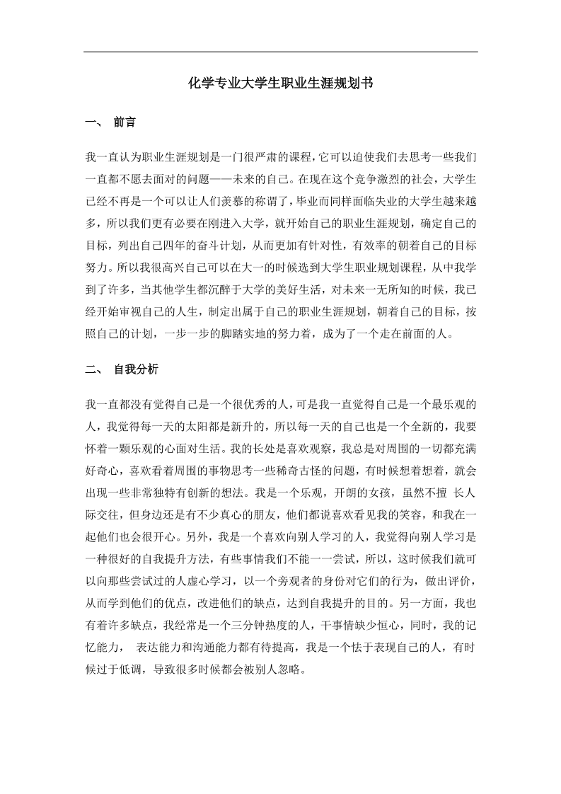 04 化 学 专 业 大 学 生 职 业 生 涯 规 划 书 3