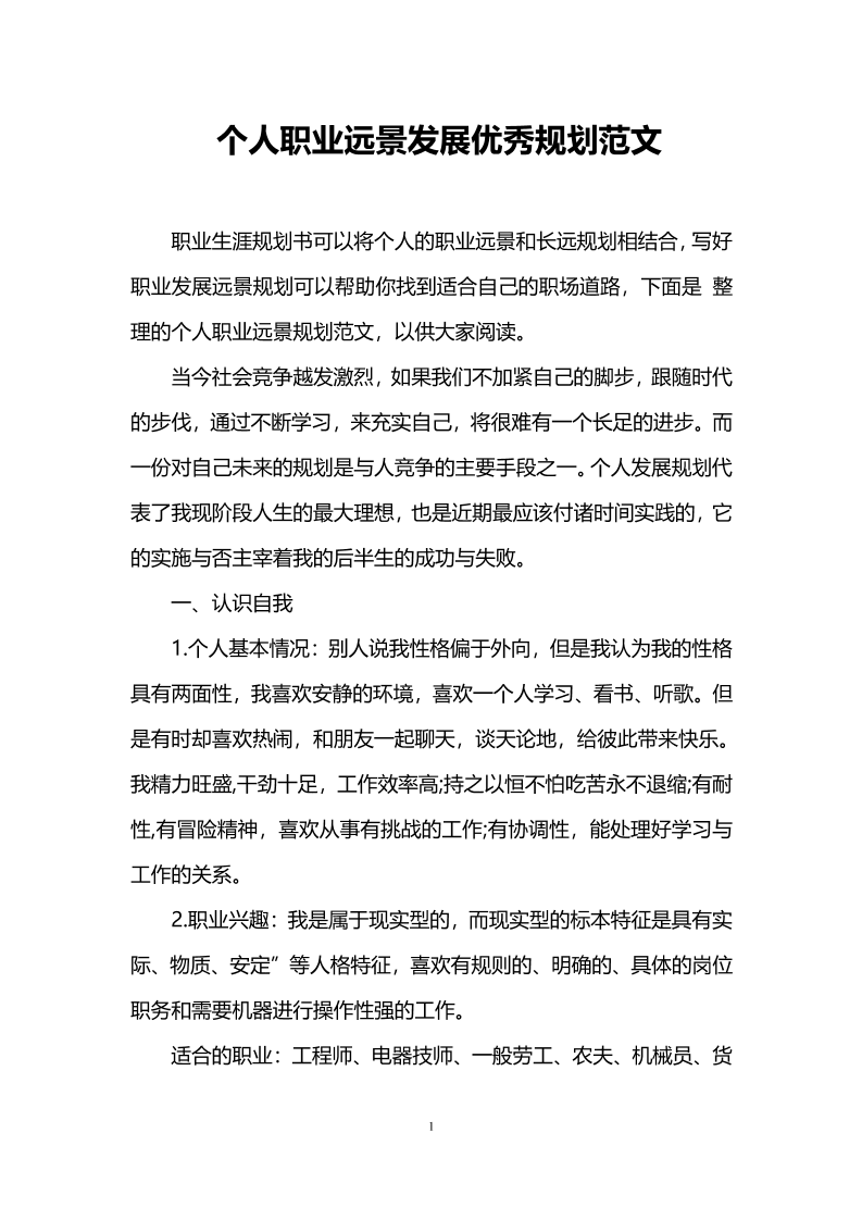 个人职业远景发展优秀规划范文