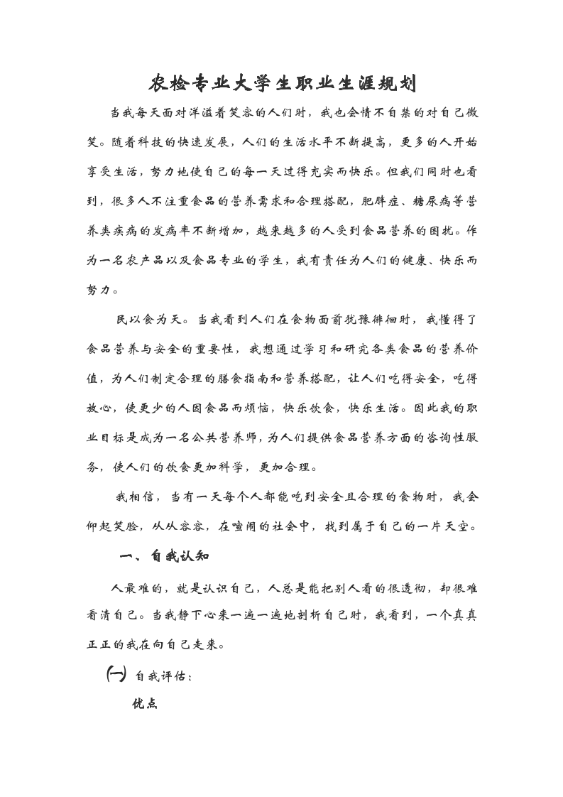 农检专业大学生职业生涯规划