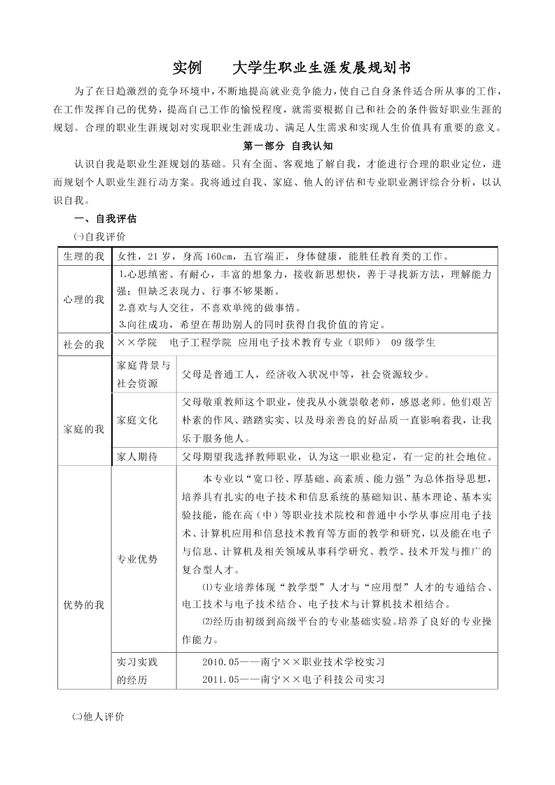 大学生职业生涯规划书基本内容