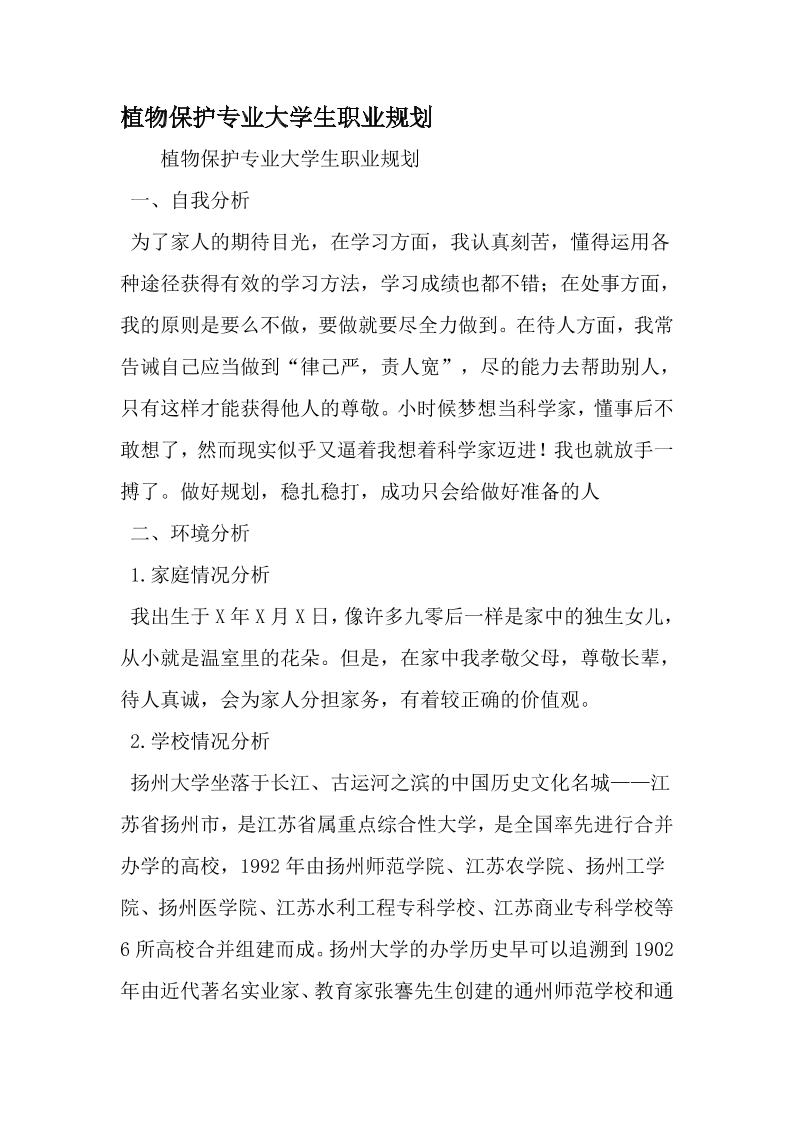 植物保护专业大学生职业规划-2019年精选范文