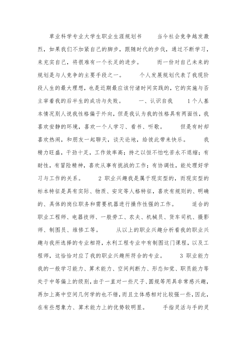 草业科学专业大学生职业生涯规划书 (1)
