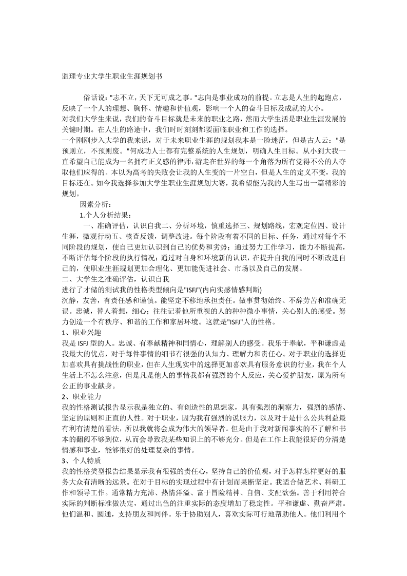 唐泉监理专业大学生职业生涯规划书