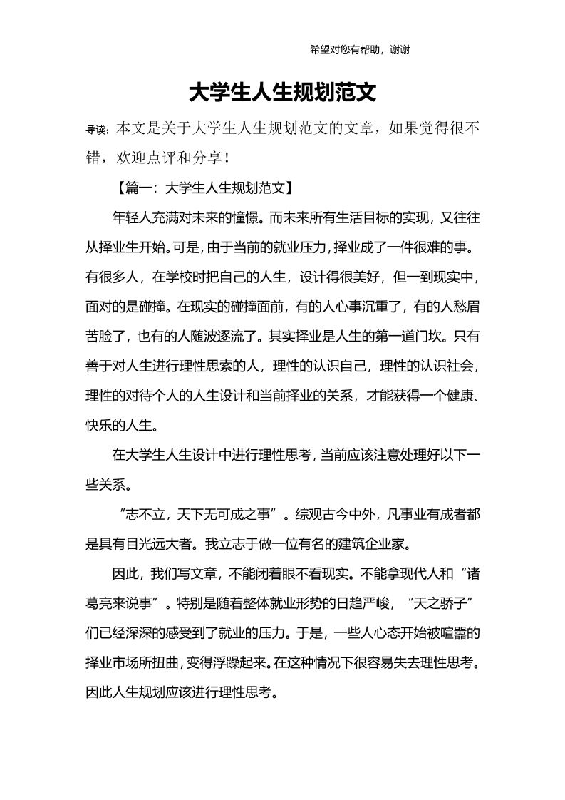 大学生人生规划范文-1