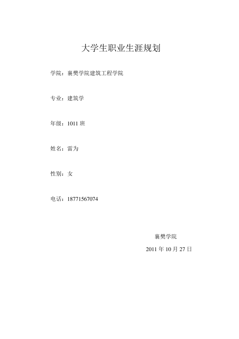 大学生建筑学职业生涯规划书(367)