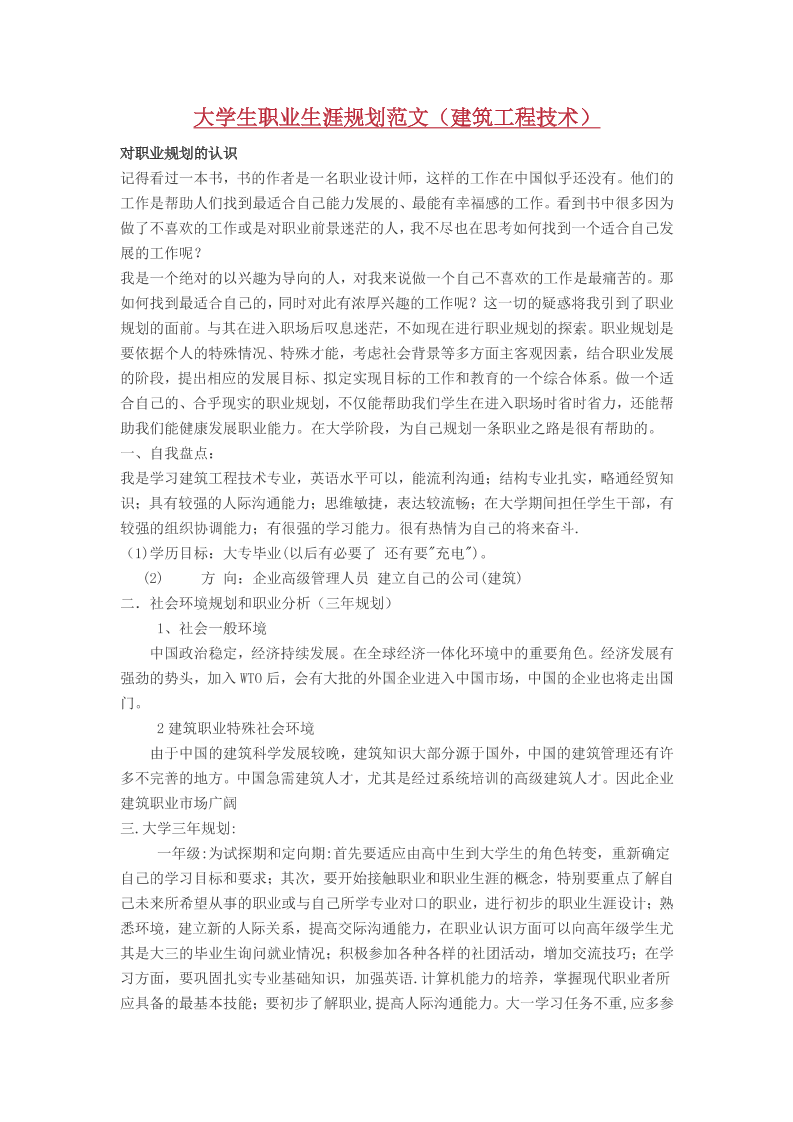 大学生职业生涯规划书建筑学