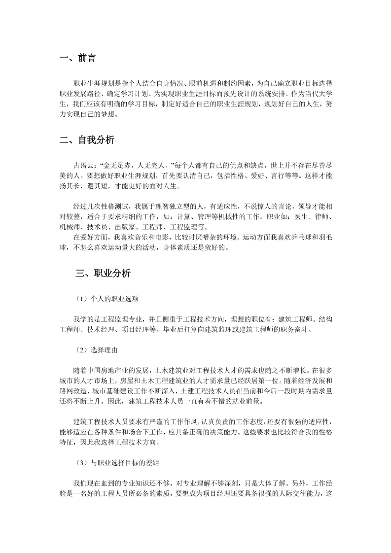 土木系(-监理-)专业职业生涯规划书(结课作业)