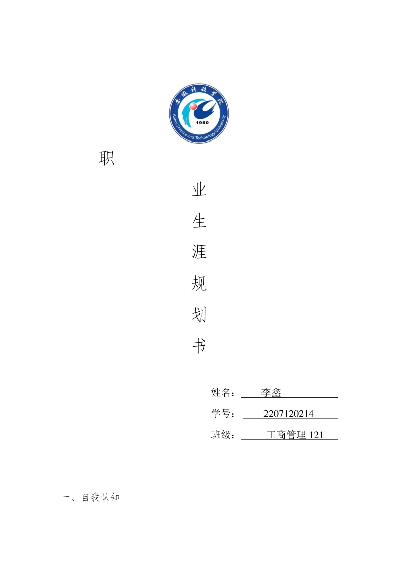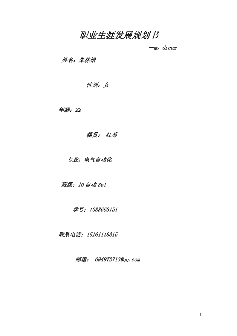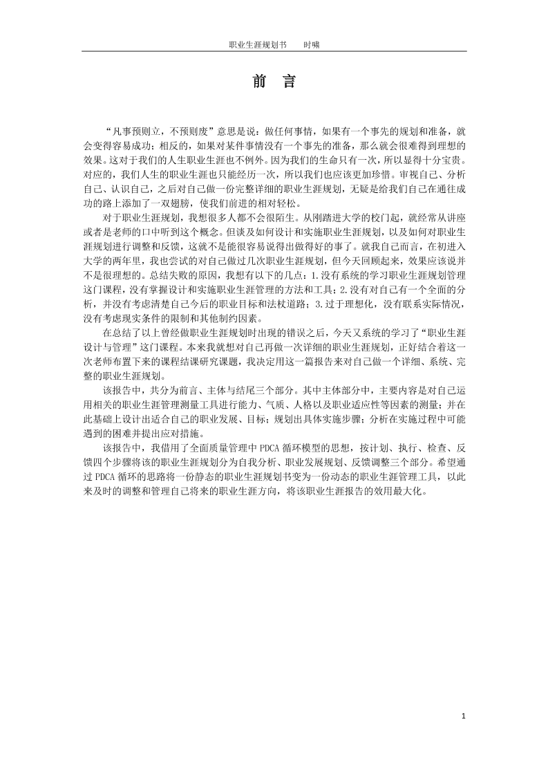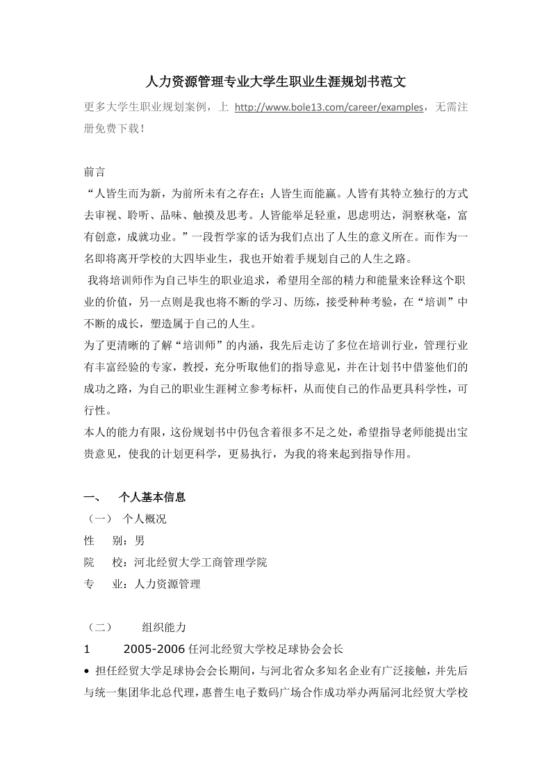 人 力 资 源 管 理 职 业 生 涯 规 划 书
