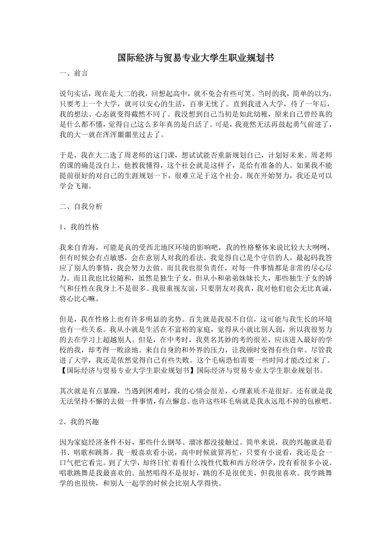 【国贸专业大学生职业生涯规划书范文】-大学生生涯规划书范文