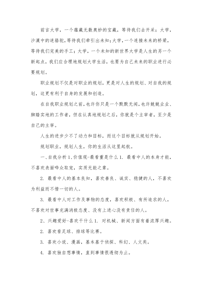 生涯规划书模板