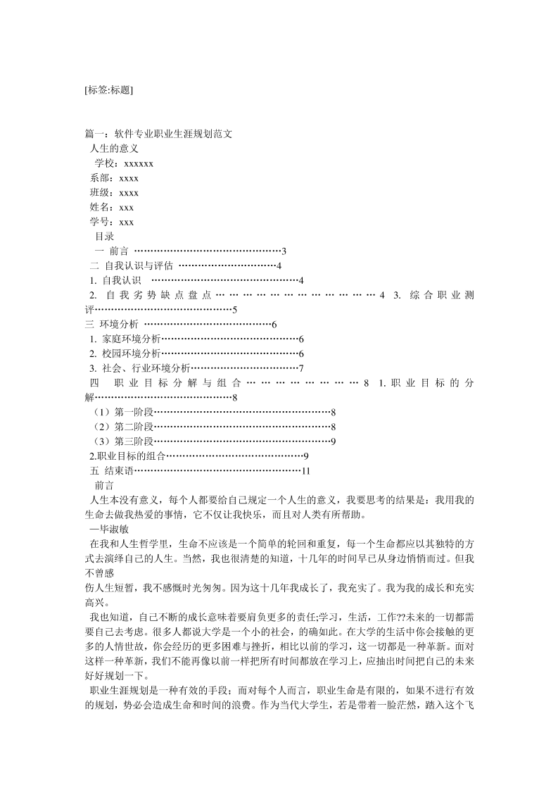 大学生职业生涯规划书软件工程