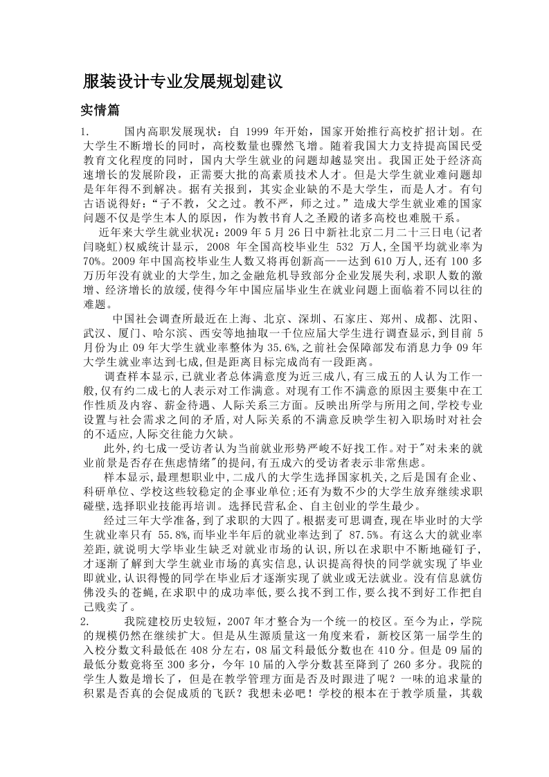 服装设计专业发展规划