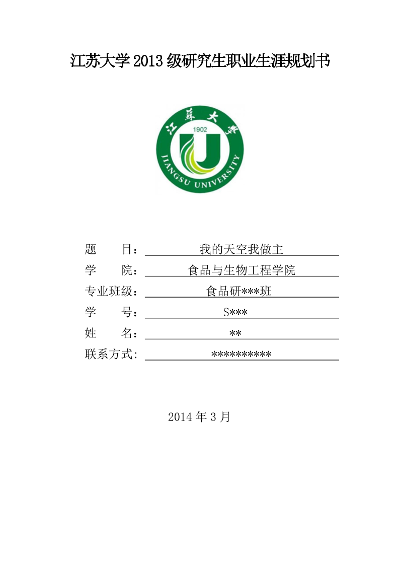 模版参考-食品某同学职业生涯规划书(不能照抄内容-可参考版式)