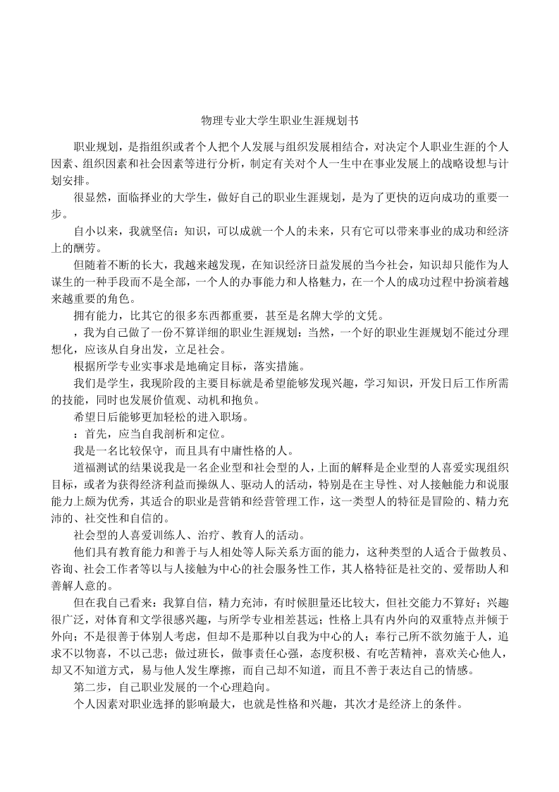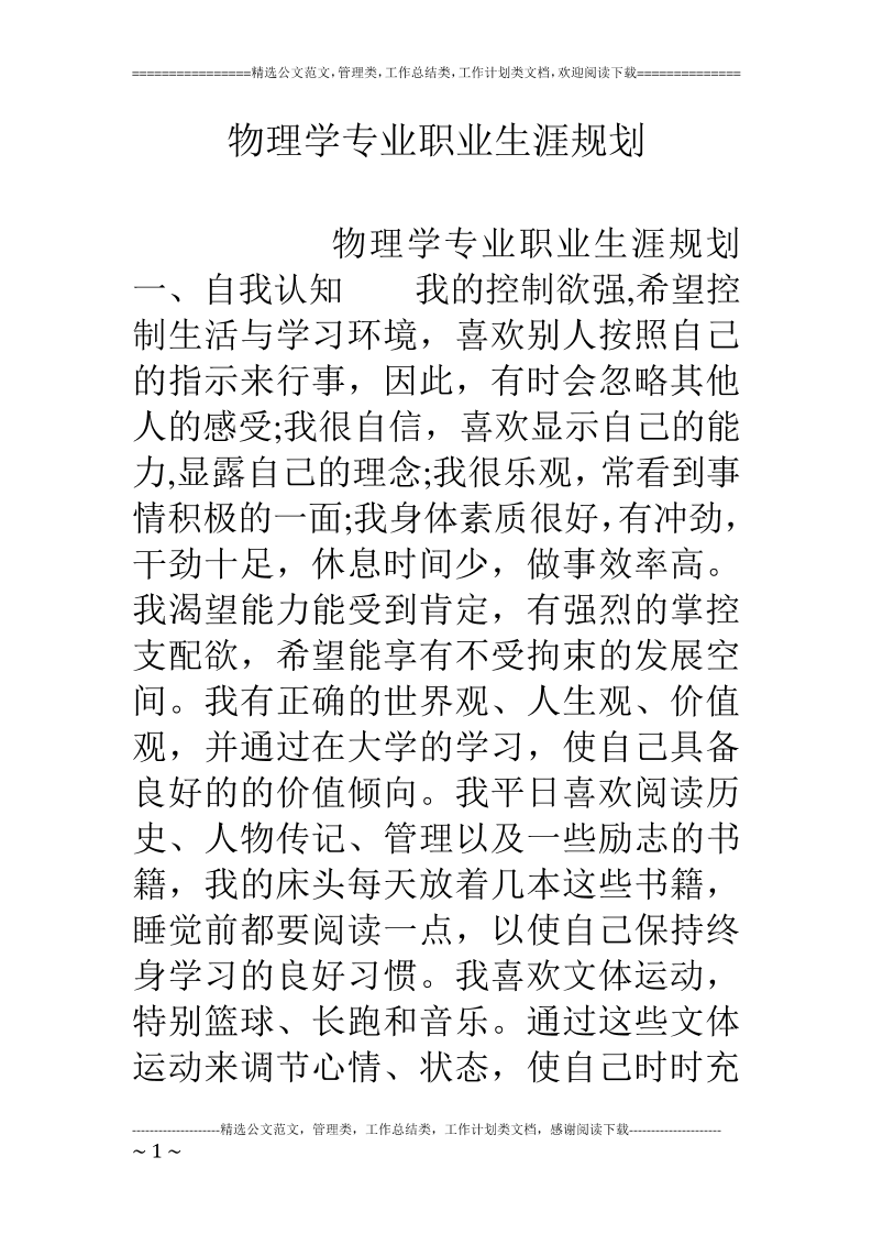 物理学职业规划书