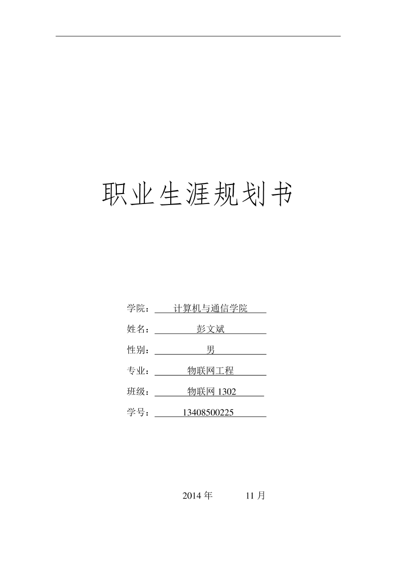 物联网1302彭文斌职业生涯规划