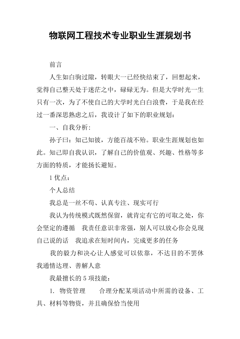 物联网专业大学生职业生涯规划书