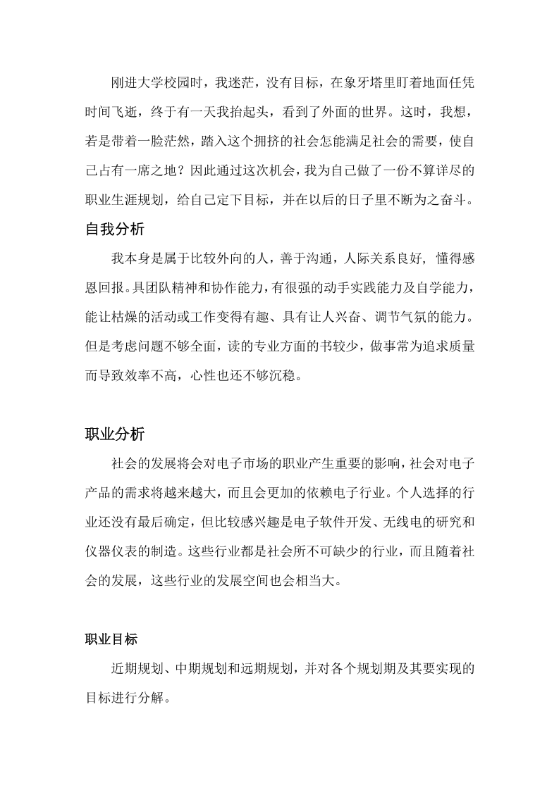 电子学院物联网专业职业生涯规划书