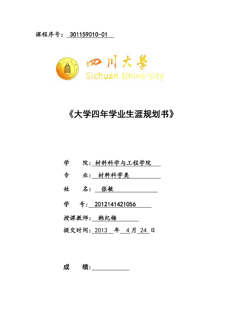 我的职业生涯规划计划书(材料科学与工程专业的)