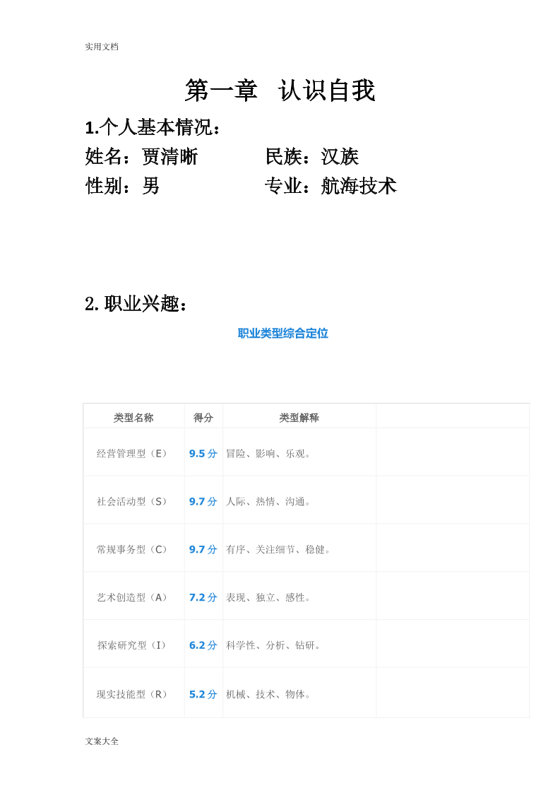 航海类职业生涯规书