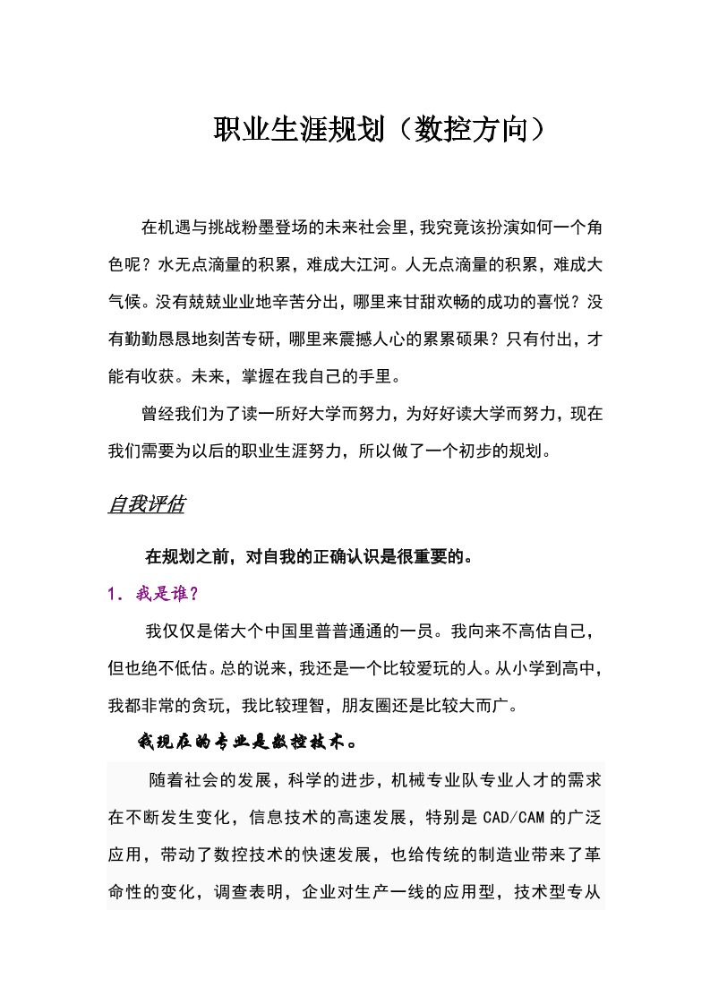 大学生职业生涯规划书--数控