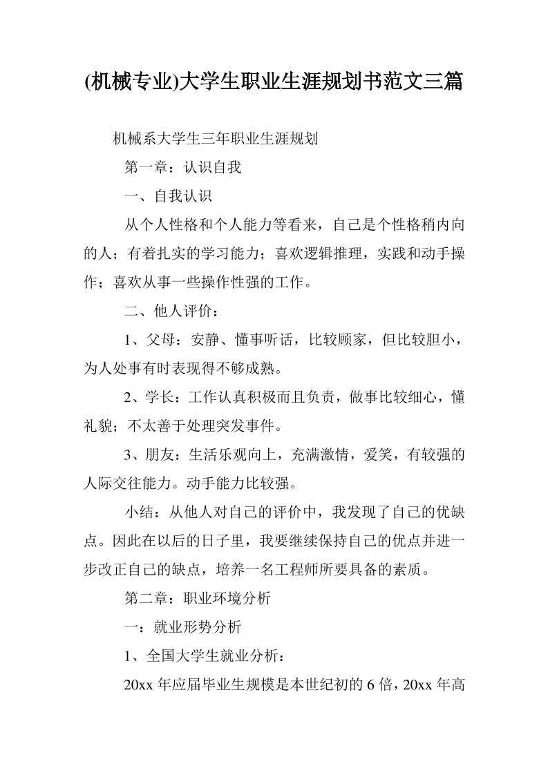 (机械专业)大学生职业生涯规划书范文三篇