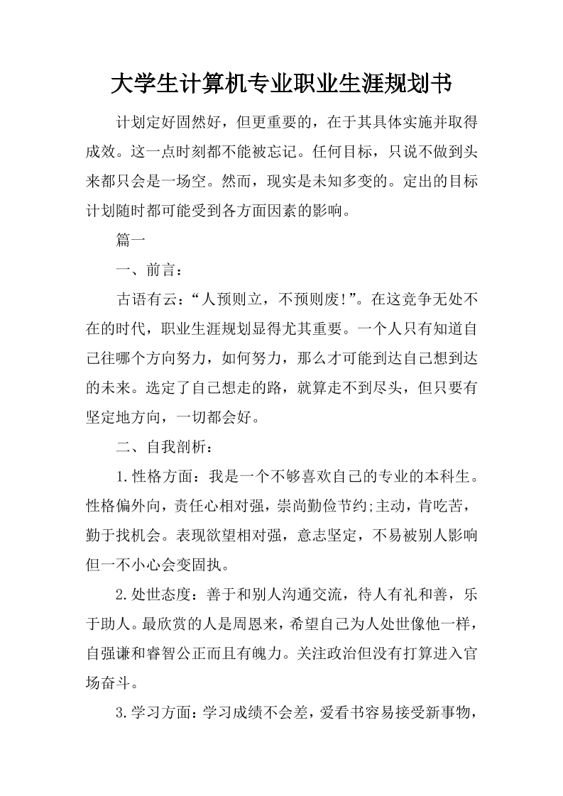 计算机应用技术专业大学生职业生涯规划书 (1)