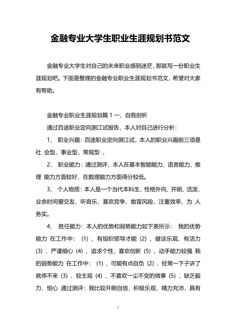 10、职业生涯规划书范文—金融学专业