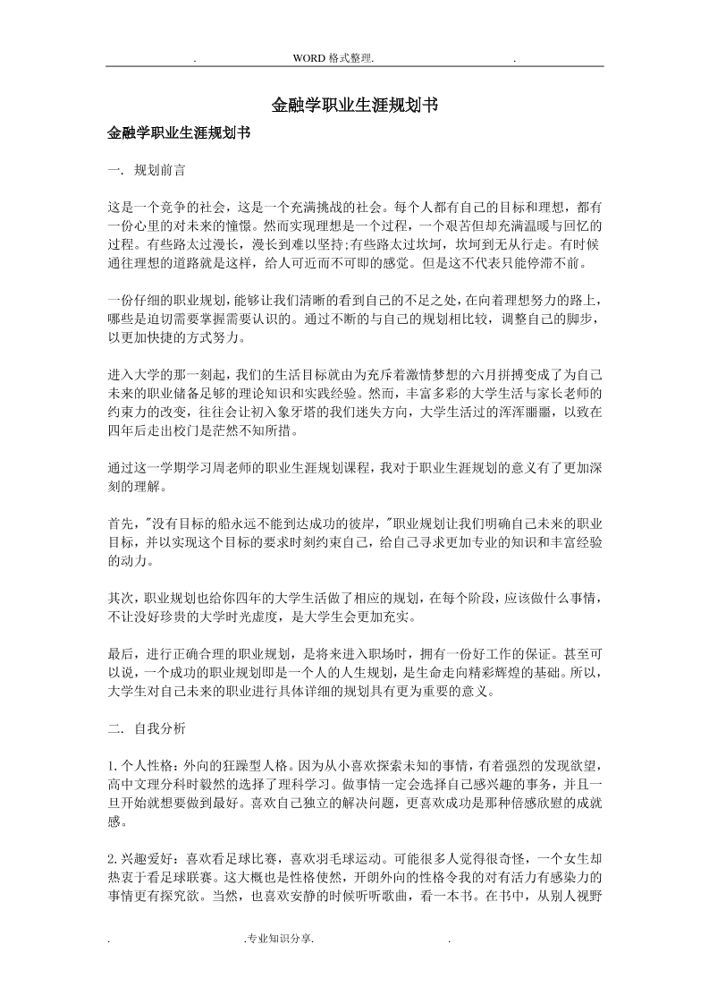 9、大学生金融职业生涯规划书