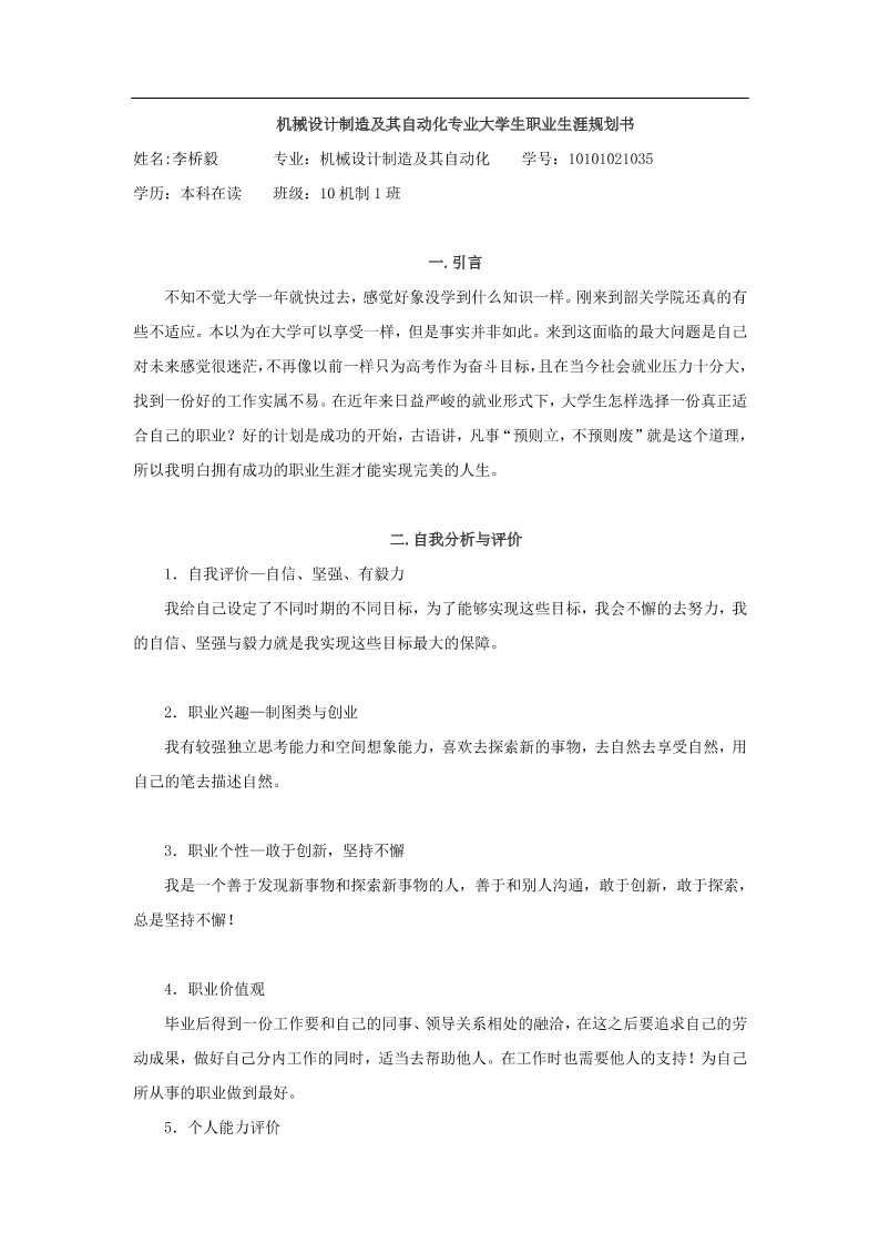 1、机械制造与自动化专业大学生职业生涯规划书 (1)