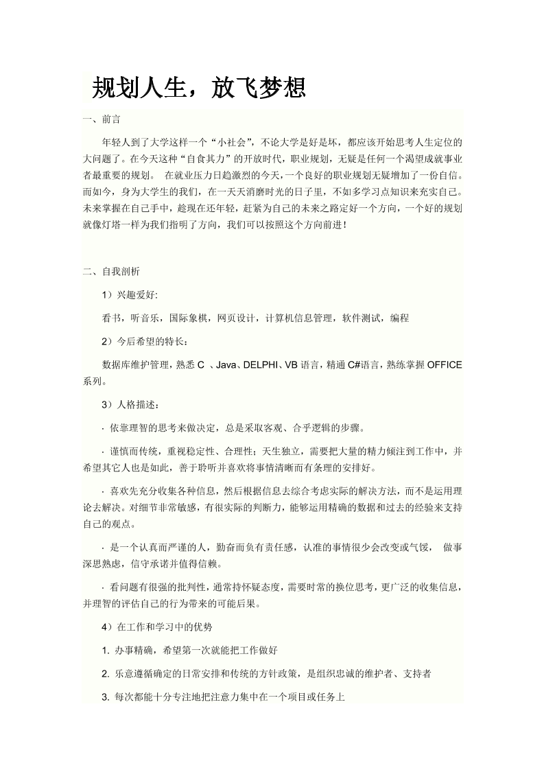 2、大学生计算机专业职业生涯规划书