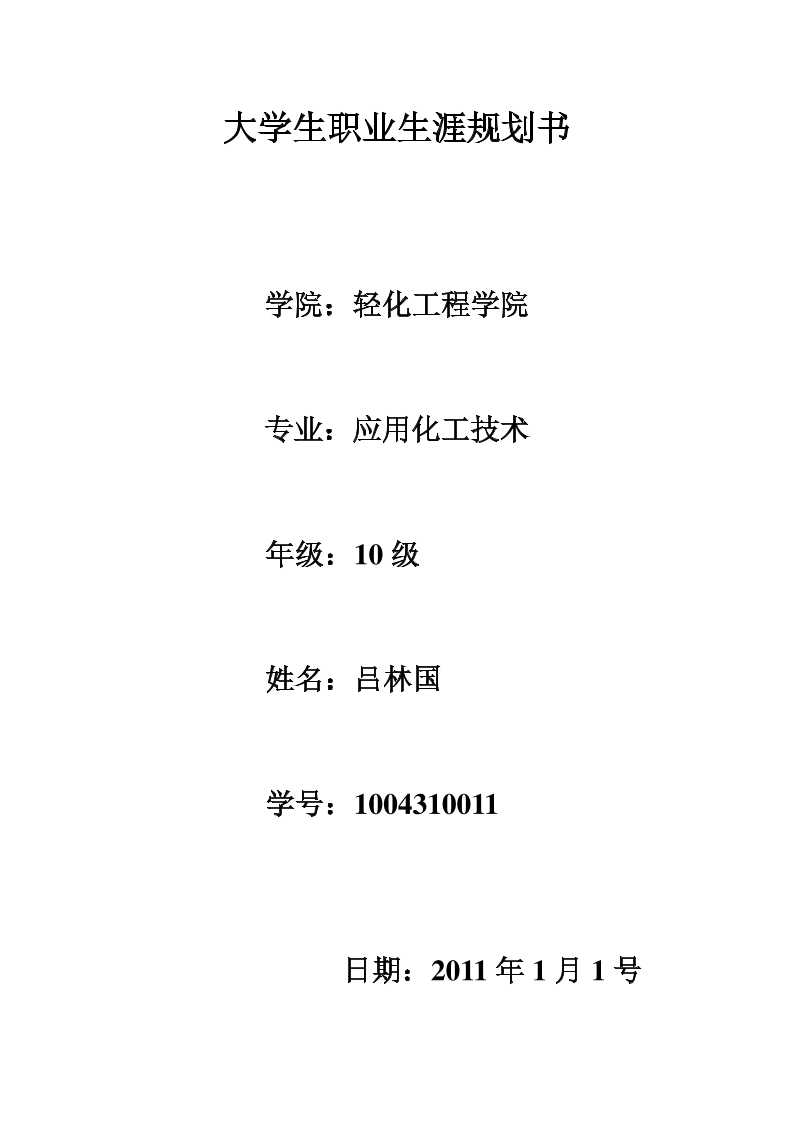 7、04 化 学 专 业 大 学 生 职 业 生 涯 规 划 书 3