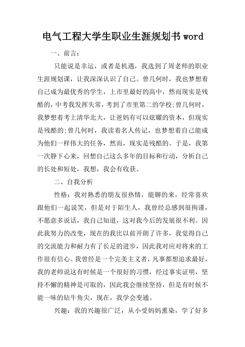 1、03 电 气 信 息 专 业 大 学 生 职 业 生 涯 规 划 范 文